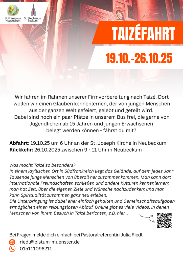 Um dich direkt anzumelden, klicke einfach auf die anstehende Veranstaltung „Taizéfahrt“ im Kalender!
